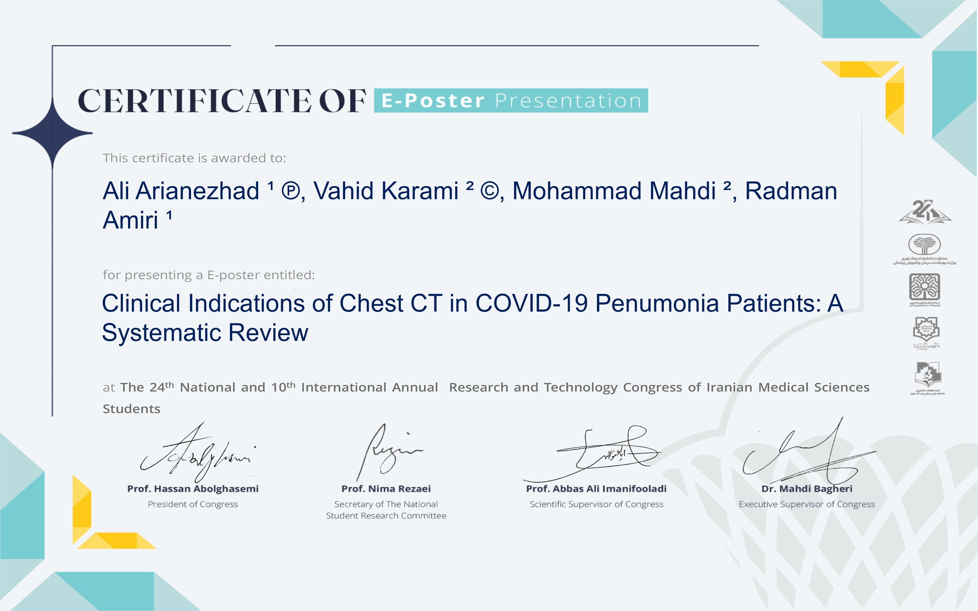 Clinical Indications of Chest CT in COVID-19 Pneumonia Patients: A Systematic Review |