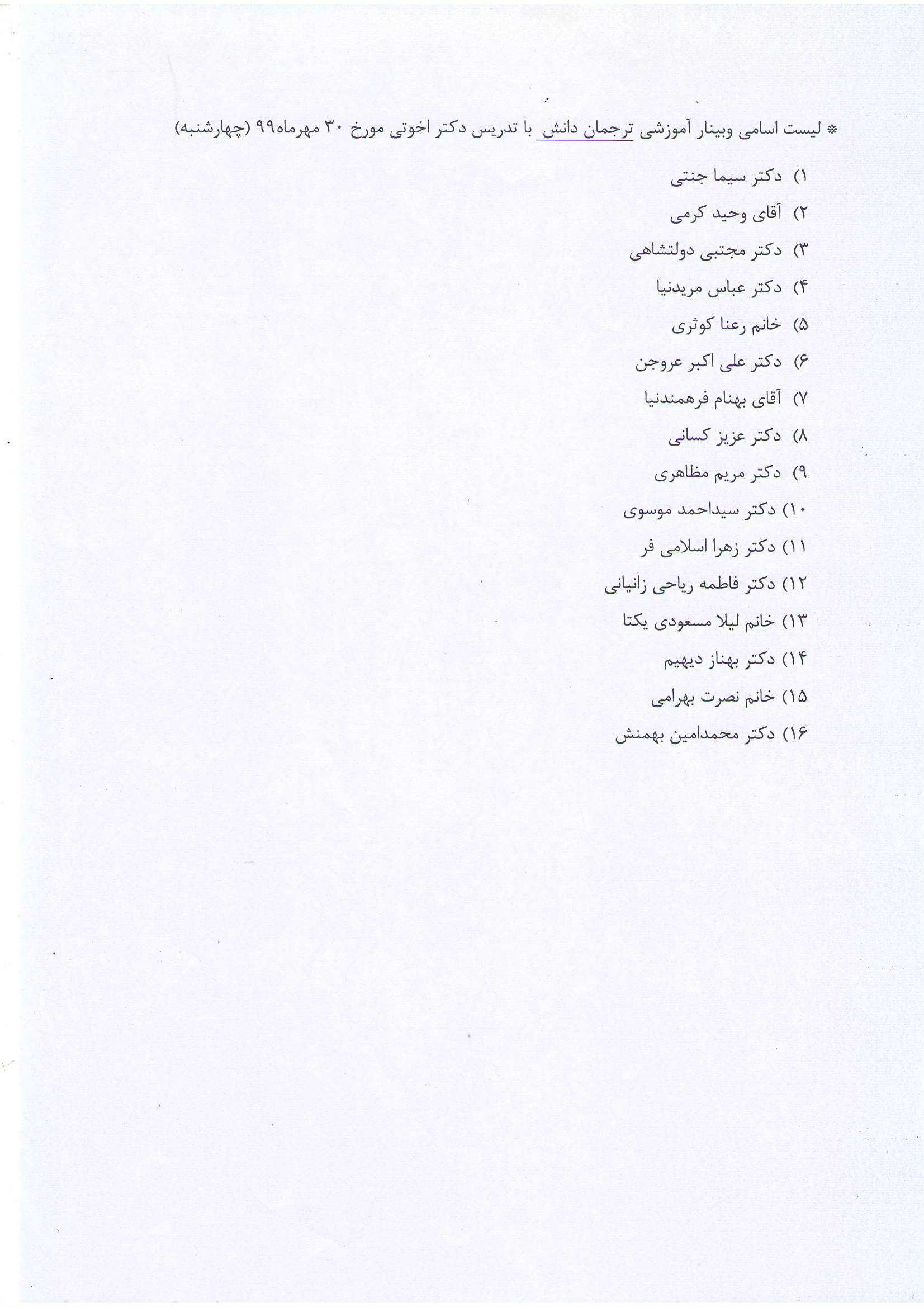 ترجمان دانش وبینار (غیر حضوری) 30 مهر 1399 |
