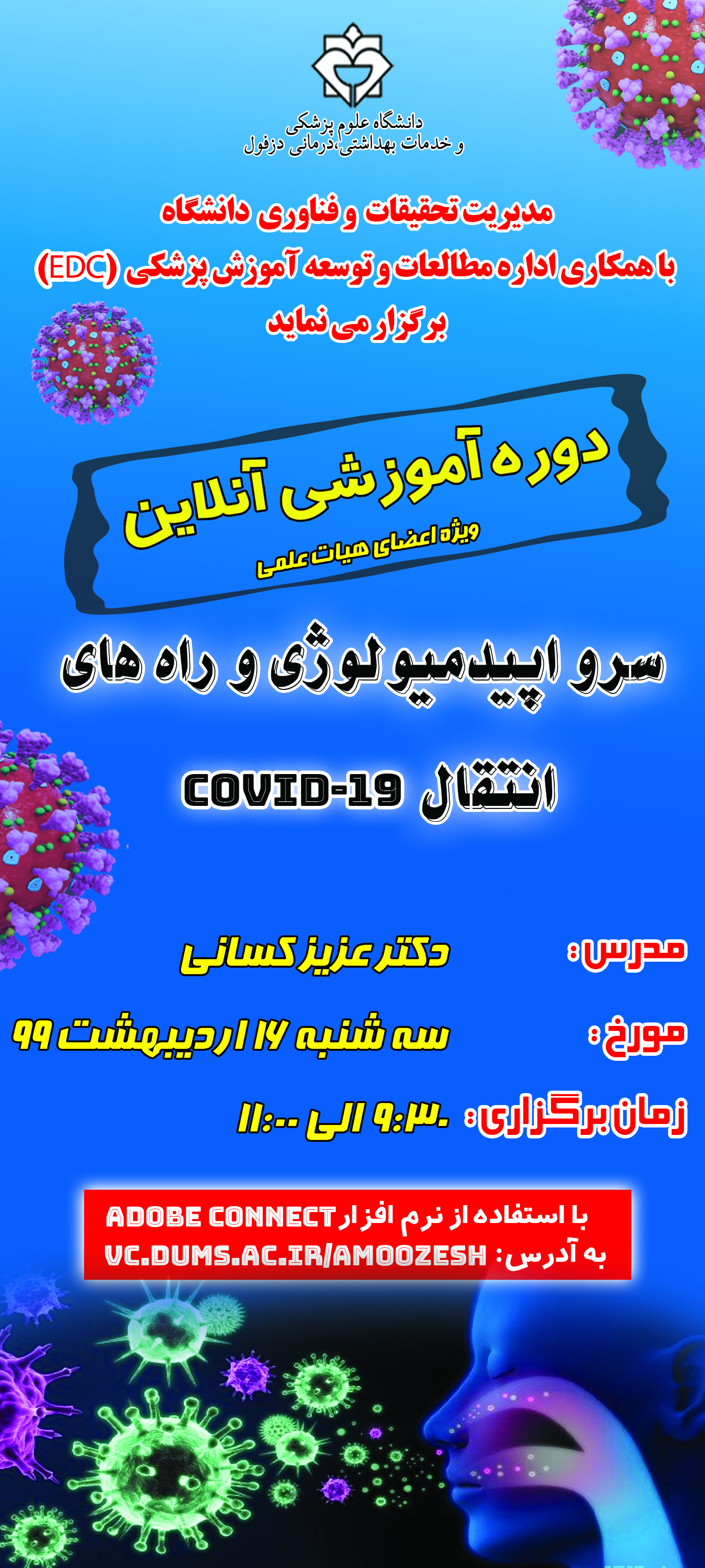 سرواپیدمیولوژی و راههای انتقال COVID-19 وبینار (غیر حضوری) 16 اردیبهشت 1399 |